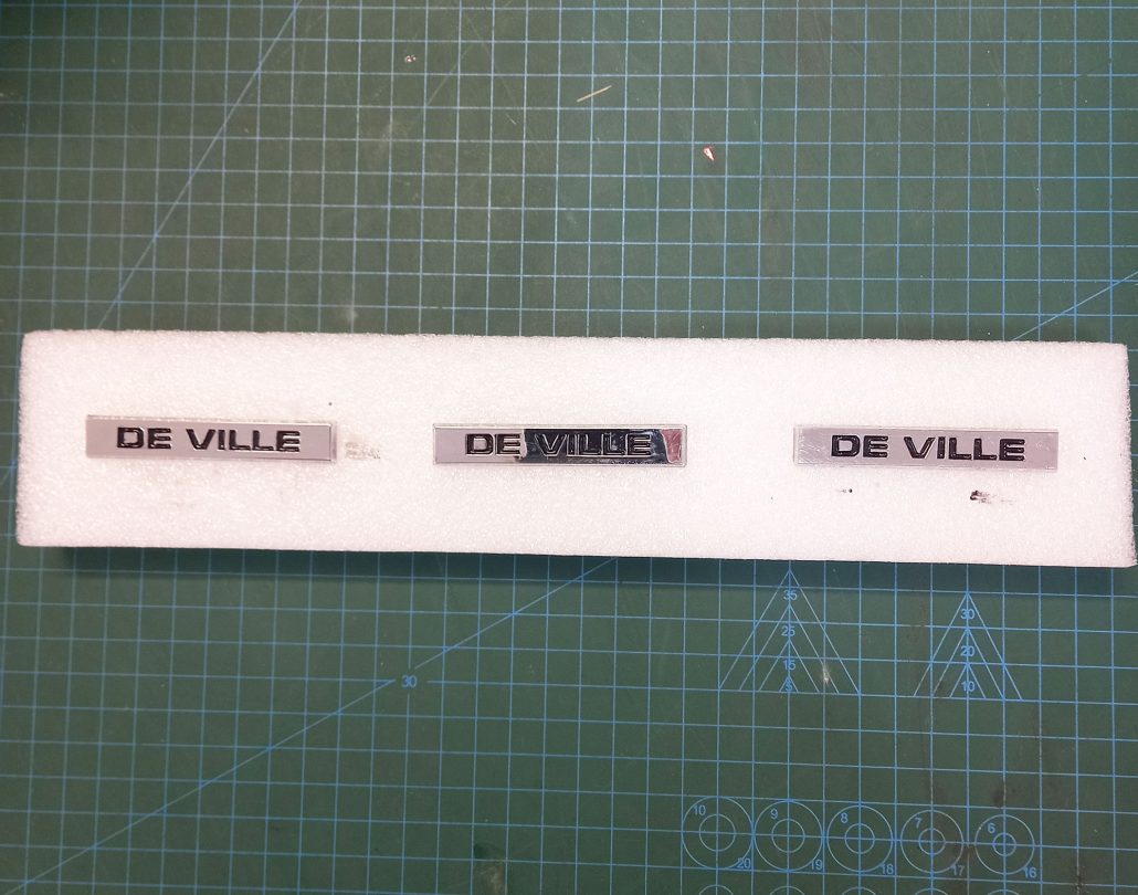 The process was very tedious. For the “Shields”, I mainly used the pointy end of some wooden skewers to apply the paint and “push” it into the corners. If it was really small and tight, I’d use the tip of a syringe. Same, same for the DeVille badges. For the Statesman badges, I just used a very fine and small paintbrush.